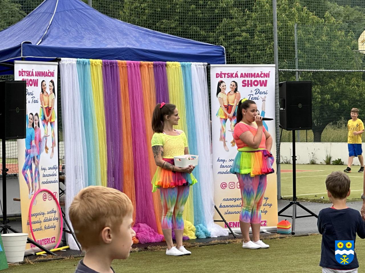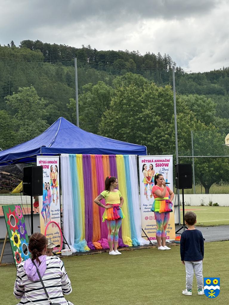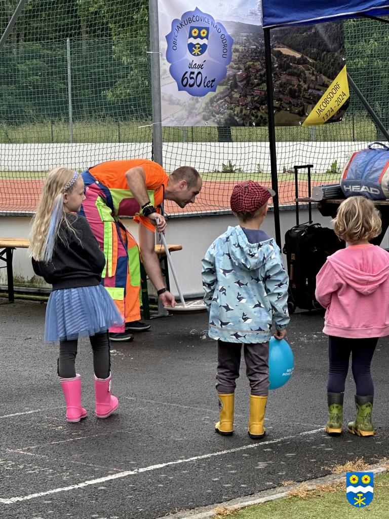 Tentokrát se akce konala v pátek od 15 hodin na hřišti u školky. Přijely za námi holky Deni a Teri se svým animačním programem a balonkový klaun. Malovalo se na obličej a pletly se copánky :-). I přes nepříznivé počasí jste přišli a my vám za to moc děkujeme!